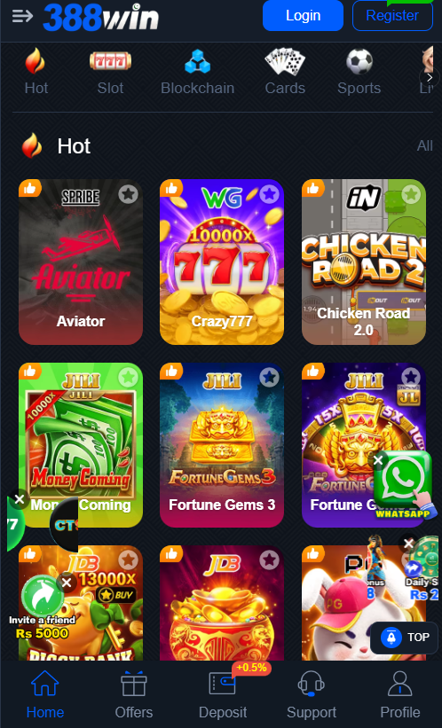 388 Win Game is an online gaming app where you can play games and earn rewards or real money.