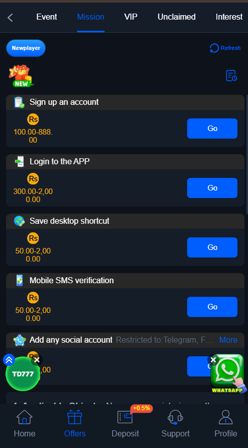 To play real money games, you need to deposit funds.